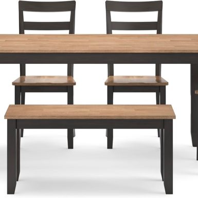 • Sale! Signature Design by Ashley Gesthaven Casual Dining Table with 4 Chairs and Bench, Set of 6, Light Brown & Dark Brown