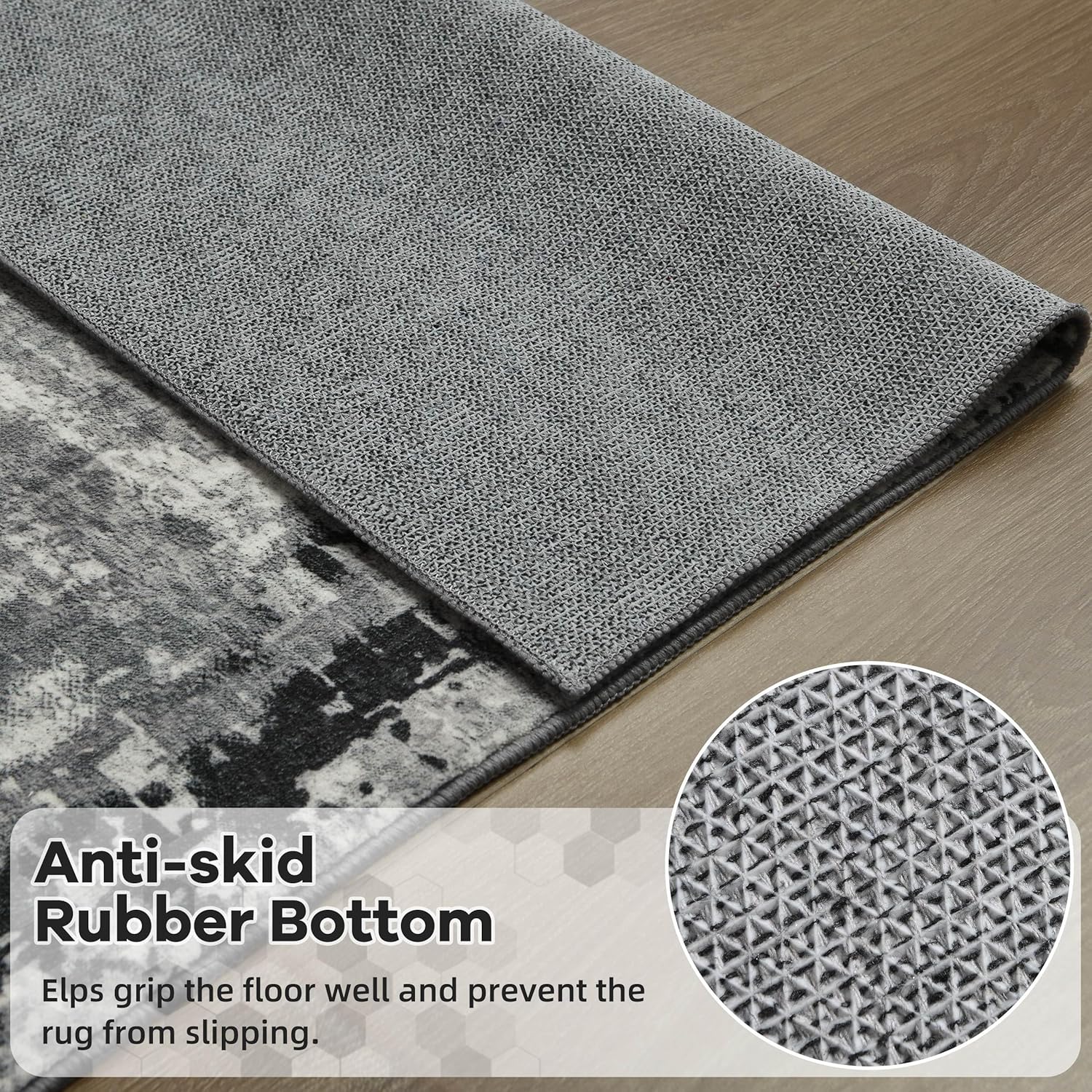 – **Non-Slip Backing:** The rug features a non-slip backing that keeps it securely in place, making it ideal for use in high-traffic areas like bathrooms, kitchens, and entryways.