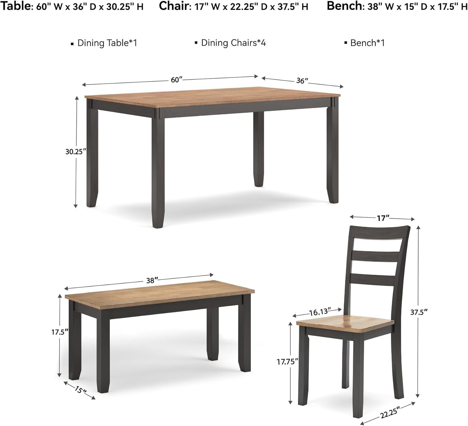 – **Elegant Design**: The Gesthaven dining set showcases a harmonious blend of light and dark brown finishes, creating a versatile look that complements any dining room décor. The smooth lines and elegant silhouette make this set a standout piece.